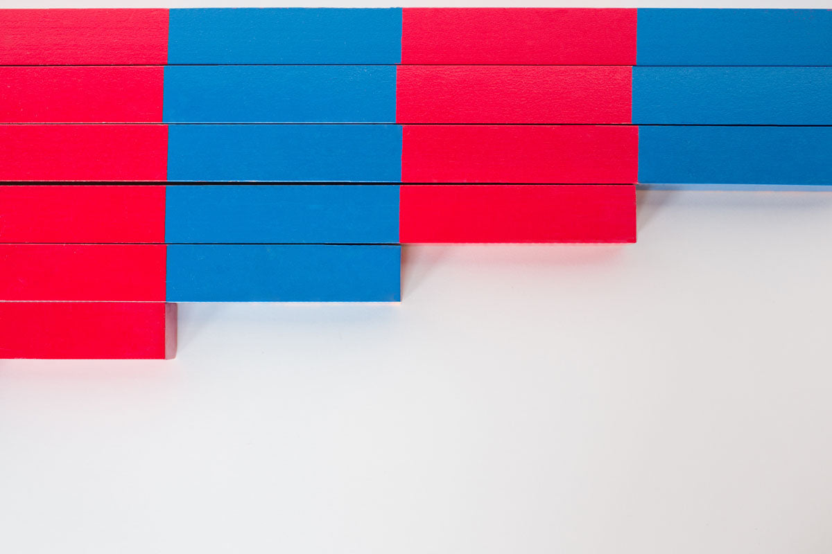 The Montessori Number Rods are an essential mathematics material designed to introduce children to the concept of numbers, counting, and quantity association. This set consists of 10 wooden rods, divided into alternating red and blue sections, with lengths ranging from 10 cm to 1 meter.