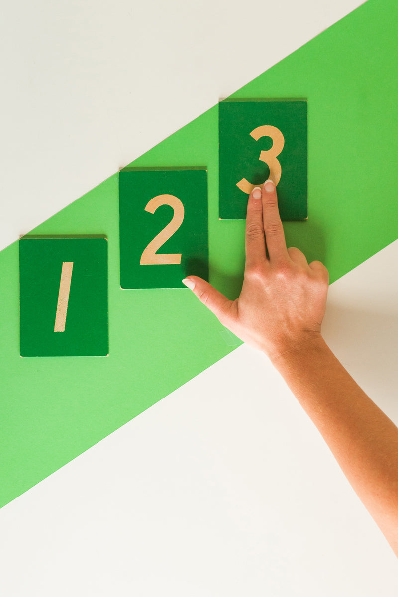 The Montessori Sandpaper Numbers are a tactile math learning material designed to introduce children to numbers 0–9 through the sense of touch. Each numeral is cut from fine sandpaper and mounted on a smooth wooden board, allowing children to trace the shapes with their fingers while learning their names and sounds.